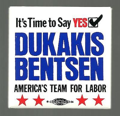 Michael Dukakis political campaign button, Lloyd Bentsen