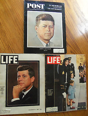 3-Vintage John F. Kennedy-JFK- Life-Post 1963 Magazines