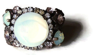 Women Antique Vintage Ring Alloy Rhinestone White Green Pink Flower Jewel