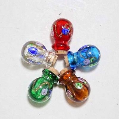 Title (ebay affiliate link): 5pcs 18x12mm Mixed Handmade Murano Lampwork Art Glass Aqua Perfume Bottle Cork