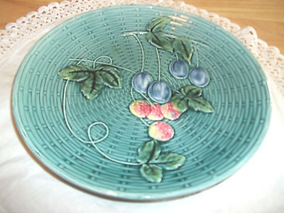 Germany G.S. Zell BADEN Majolica Plate plums raspberries fruit basketweave