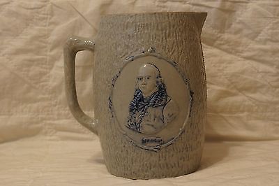 1880's UTICA BEN FRANKLIN & REVOLUTIONARY SOLDIERS SALT GLAZE STONEWARE PITCHER