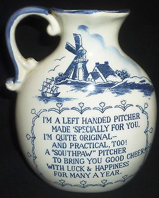 VINTAGE LEFT HANDED NEW HAMPSHIRE BLUE/WHITE PORCELAIN CREAMER PITCHER SOUVENIR
