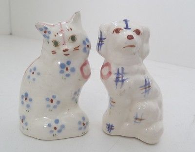 Vintage Porcelain Blue & White Dog & Cat Figurines Salt & Pepper Shaker Set