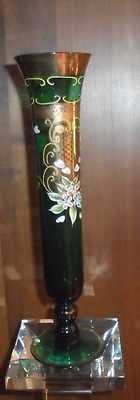 ANTIQUE GREEN VASE WITH GOLD TRIM & RAISED FLOWERS