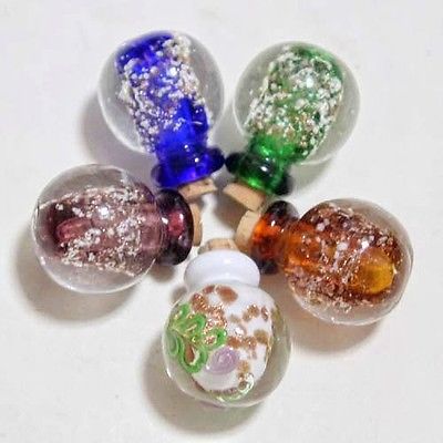 Title (ebay affiliate link): 5pcs 23x18mm Mixed Handmade Murano Lampwork Art Glass Aqua Perfume Bottle Cork.