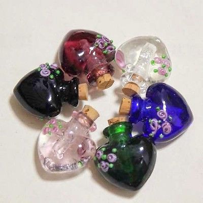 Title (ebay affiliate link): 6pcs 25x22mm Mixed Handmade Murano Lampwork Art Glass Aqua Perfume Bottle Cork.