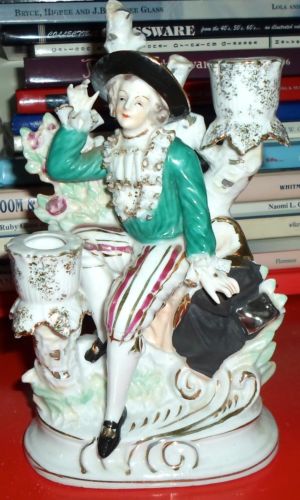 ELEGANT DOUBLE PORCELAIN CANDLE HOLDER, 18TH CENTURY FIGURE