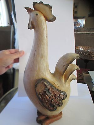 Folk Art Hand Carved Wooden Rooster Statue wood Figurine 12" tall ! BEAUTIFUL