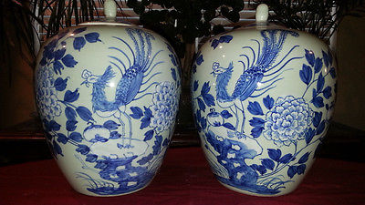 VINTAGE "PAIR" OF BLUE & WHITE PORCELAIN GINGER JARS