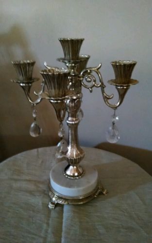 Title (ebay affiliate link): Vintage Silver Cast Metal Candelabra with Marble Base and Teardrop Crystals