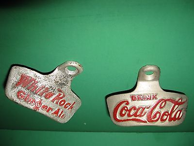 vintage "COCA COLA" and "WHITE ROCK" cast Pair of Bottle OPENERS wall mount