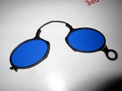 Title (ebay affiliate link): ANTIQUE/VINTAGE UNKNOWN MAKER FOLDING SUNGLASSES WITH BLUE LENS IN GOOD SHAPE
