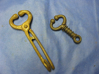Antique vintage cast iron bull nose lead pliers & small ring, farm ranch tool