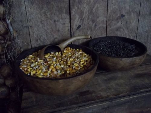 Title (ebay affiliate link): Primitive gourd bowls w/gourd dipper~aged corn~sunflower seeds--early look