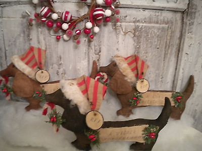 PrimiTive CHristMAs DAchshuNDS~Set/3~FlaNNel SanTA HatS~LONG WIENER'S NAP~SANTA