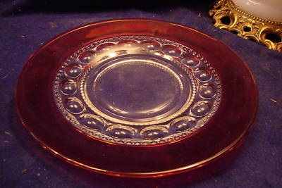 GLASS 8.5'' KING'S CROWN RUBY RED FLASHED PLATE