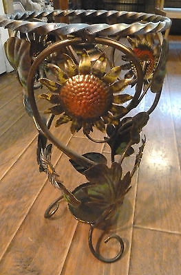 VINTAGE TWISTED WROUGHT IRON METAL UMBRELLA / CANE STAND / FLORAL SUNFLOWERS
