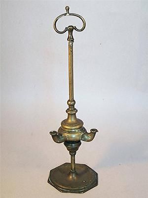 SUPERB ANTIQUE BRASS BRONZE TRIPLE BURNER OIL LAMP 1800 candlestick cruz