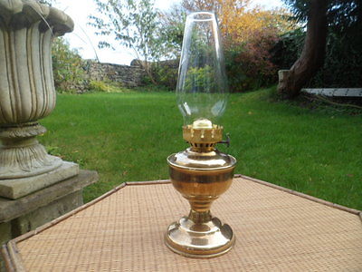 Title (ebay affiliate link): small 10" Vintage Brass oil lamp complete & all working