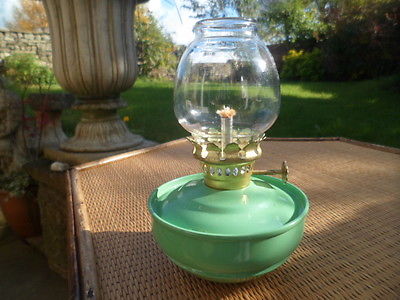 Small Vintage pale green kelly/nursery oil lamp" Shabby Chic.".