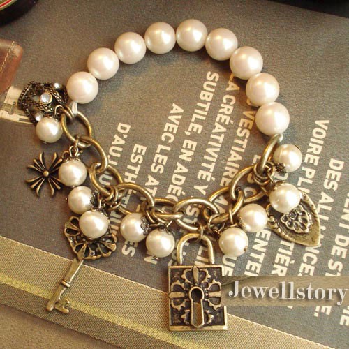 Fashion Antique Pearl Beads Mix Dangle Pendant Bracelet