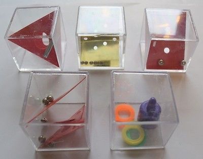 Title (ebay affiliate link): Vintage Lot - 5 Hard Plastic Cube PUZZLES maze Brain Teaser Toy Dexterity Travel
