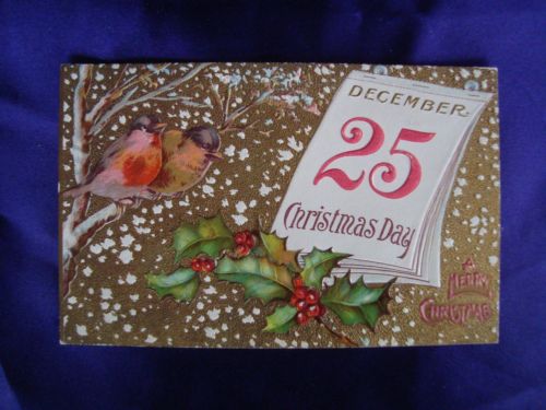 Title (ebay affiliate link): Vintage Embossed Christmas Postcard Birds Snow Merry Christmas With Santa Stamp