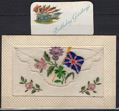 GB GREAT BRITAIN WW1 Embroidered Silk POSTCARD FLAG & FLOWERS UNUSED