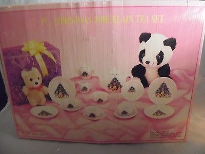 Vintage 17 pc Christmas Porcelain Childrens Tea Set