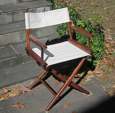 Title (ebay affiliate link): Vintage Mid Century Modern Solid Maple Telescope Directors Chair White Canvas