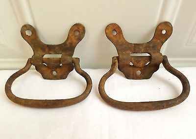 Antique Rustic Pair Of Cast Iron Drop Handle Drawer Pulls Furniture Oval Shabby!