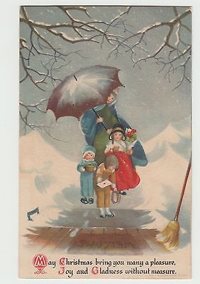 Unsigned Clapsaddle vintage postcard umbrella woman children broom Wolf and Co.