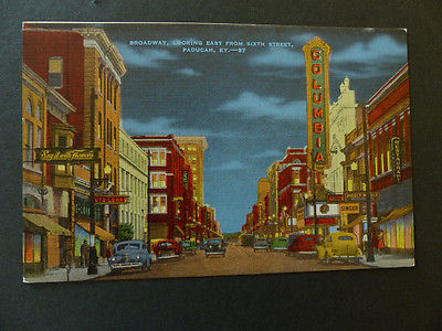 Title (ebay affiliate link): BROADWAY LOOKING EAST FROM 6TH ST PADUCAH KY night view linen post card