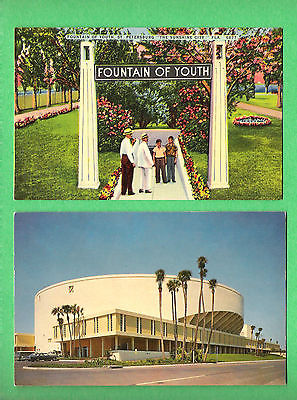 h 2 POSTCARDS FROM ST.PETERSBURG FLORIDA 1940s FOUNTAIN OF YOUTH & 1960s