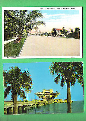 h 2 POSTCARDS FROM ST.PETERSBURG FLORIDA 1930s BEACH DRIVE & 1973 MUNICIPAL PIER