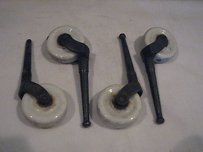 Vintage Metal & Porcelain Furniture Coaster, Lot of Four