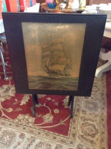 Title (ebay affiliate link): Vintage Antique Tilt Top Game Card Wood Table- Boat Ship Lithograph Print