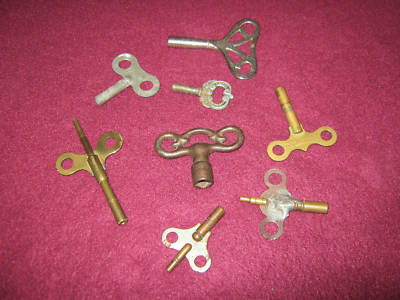 Antique Clock Keys Wind Up Mantle Keys LOT Of 8