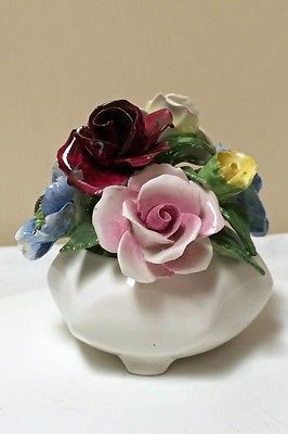 Title (ebay affiliate link): Vintage Mid-Century Radnor Staffordshire Bone China Flowers in White Pot- 4 1/2