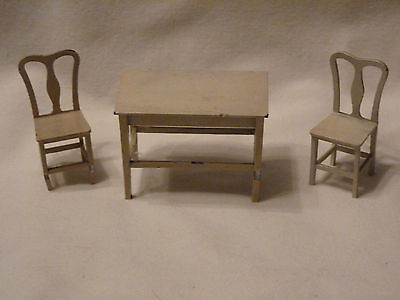 ANTIQUE TOOTSIE TOY DOLLHOUSE FURNITURE 3 PCS KITCHEN TABLE & CHAIRS MINATURES