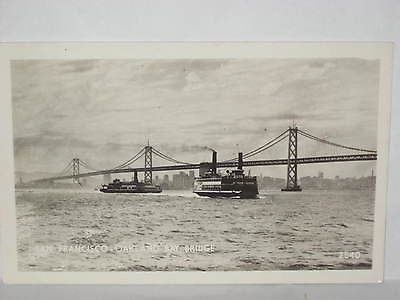 1946 REAL PHOTO POSTCARD " SAN FRANCISCO-OAKLAND BAY BRIDGE " W/ SKYLINE, SHIPS