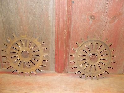 2 Vtg Cast Iron Corn Planter Seed Plates Gears Farm Tool Steampunk IH wall Art