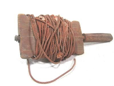 Antique 19thC WOODEN STRING WINDER RED PAINT WASH Primitive Folk Art
