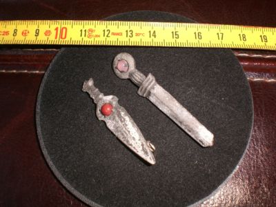 WHW WW2 GERMAN 2 TINNIE PIN SWORD ANTIQUE 1939 ORIGINAL