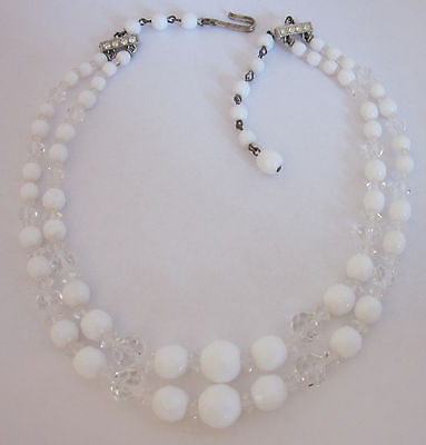 Vintage Faceted Milk Glass/Crystal Glass Bead Necklace