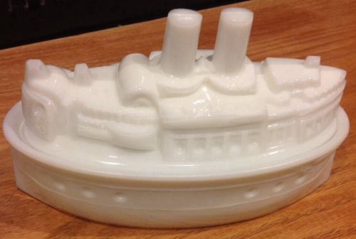 Title (ebay affiliate link): Flaccus White Milk Glass Battle Ship Covered Candy Condiment Dish
