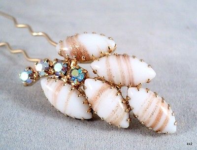 Title (ebay affiliate link): Vintage Hair Comb Milk Glass Stones w/ Gold Drizzle Lines & Rhinestones -Estate