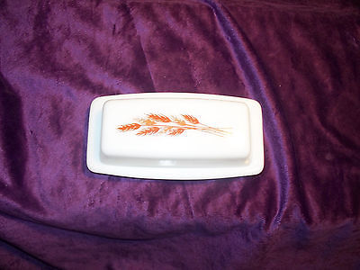 Vtg Pyrex Autumn Harvest WHEAT Covered BUTTER DISH White Milk Glass