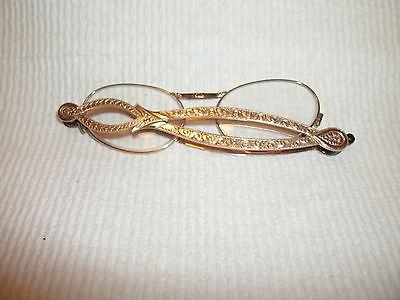 VINTAGE 12K GOLD FILLED LORGNETTE FOLDING SPECTACLE GLASSES W/CASE & BOX